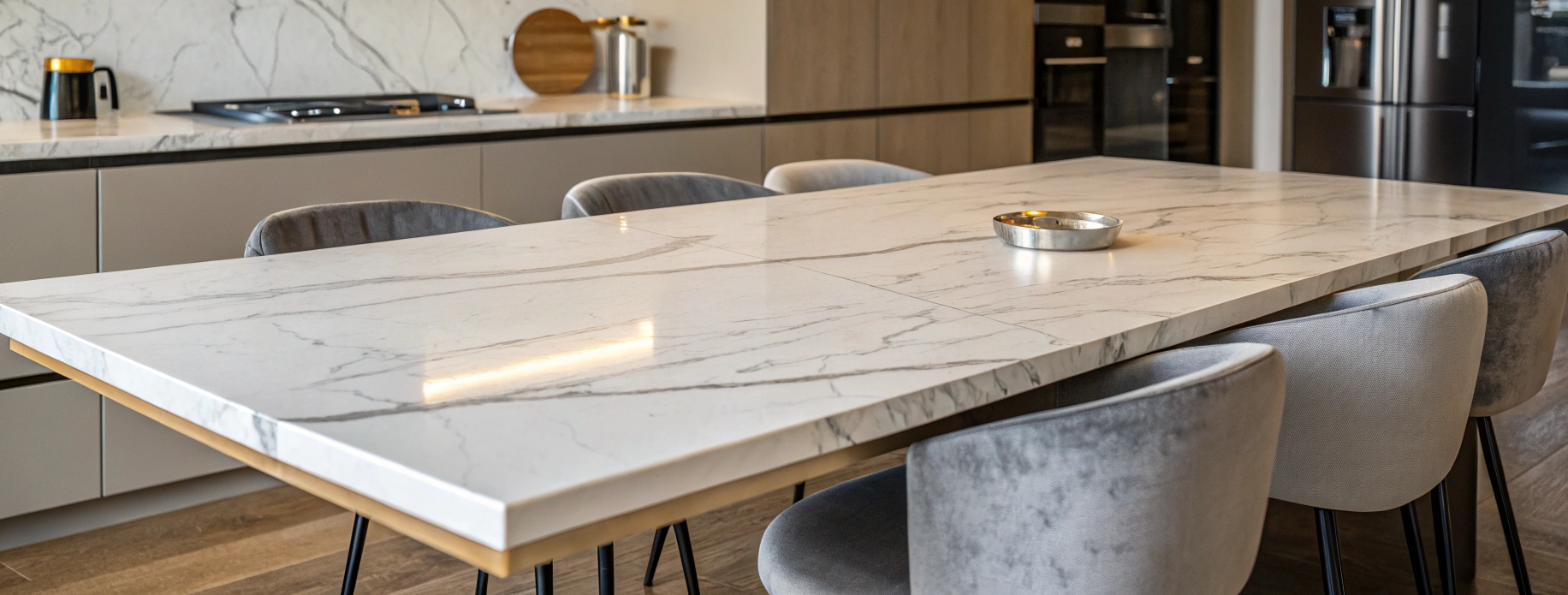 От всей семьи выражаю вам глубокую благодарность за прекрасную работу, проделанную сотрудниками вашей компании! Долго искала где в Москве изготавливают красивейшие и качественные столешницы из камня на кухню и наконец нашла ваш сайт. Уже на следующий день после заявки приехал замерщик с каталогом образцов. Благодаря его мастерству и советам мы смогли определить, какой именно вид столешницы лучше всего впишется в интерьер. Заказ был выполнен точно в срок, а кухня теперь выглядит очень стильно и современно!